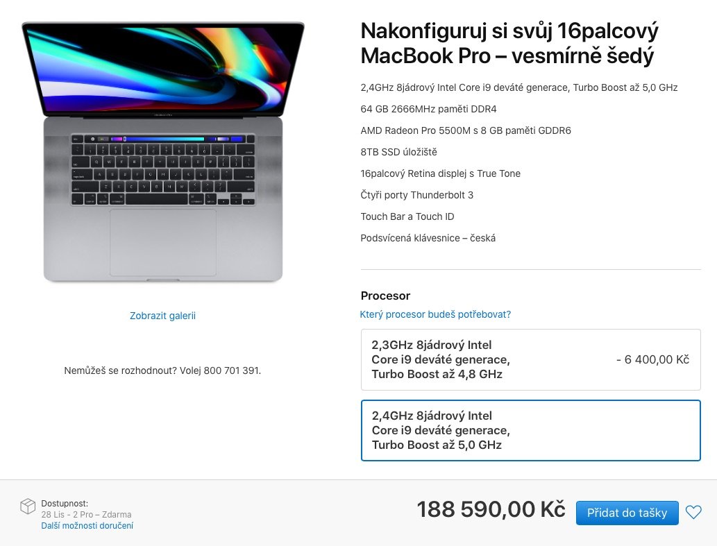Suma sumárum se dostanete na krásných 188 590 Kč. Za to dostanete 16“ MacBook Pro v plné polní, který uspokojí i ty největší labužníky. Je ovšem otázkou, kolik se jich najde v naší kotlině, ale určitě jich nebude mnoho. Na druhou stranu je fajn vědět, že tato možnost zde existuje a je pouze na vás, jestli si takovou investici dokážete obhájit.