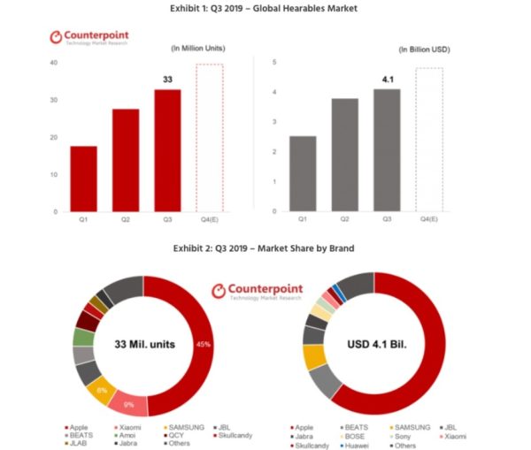 Vzhledem k tomu, že mezi červencem a zářím se prodalo celkem 33 milionů bezdrátových sluchátek, tak téměř 15 milionů z nich neslo logo Applu. Pro úplnost je důležité zmínit, že tato čísla nezahrnují prodeje dceřiné společnosti Beats, která patří pod křídla Applu.