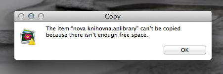 Pokud budete provádět akci na témže disku nezapomeňte, že kromě velikosti stávající knihovny budete potřebovat ještě nějaký pracovní prostor a místo pro běh ostatních aplikací.
