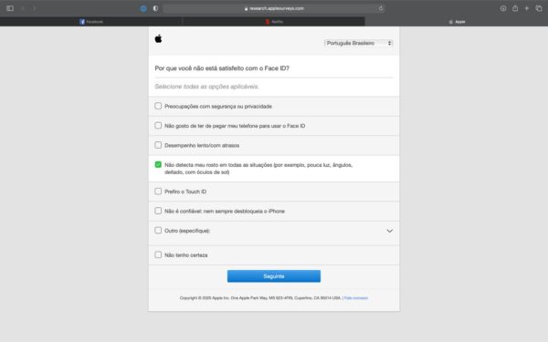 Kromě jiného Apple zajímá především pohled na používání Face ID. Pokud uživatel zatrhne, že je nespokojen s používáním této technologie, má na výběr několik předpřipravených možností, proč tomu tak je: