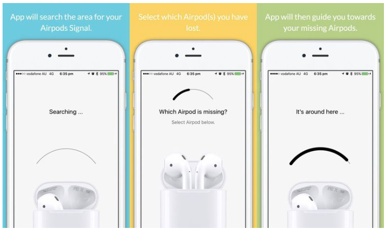 Aplikace používala k nalezení „zašantročeného“ sluchátka měření intenzity Bluetooth signálu. Přestože jde o nepříliš přesný systém lokace, v mnoha případech ho lze úspěšně použít. Typickým případem je moment, kdy vám AirPods vypadnou při lenošení na gauči a vy nechcete půl hodiny prohledávat mezery v polstrování.