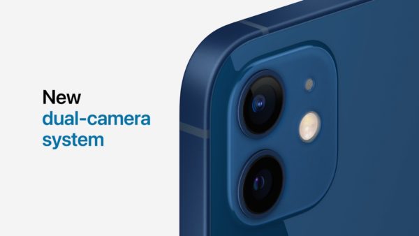 Důležitým aspektem všech nových iPhonů je fotoaprát. Během minulých let jsme si zvykli, že minimálně dvě čočky už jsou takřka standardem. I v případě iPhonu 12 tomu není jinak. iPhone 12 nabídne Ultraširokoúhlý objektiv se světelností f/2,4, 120 stupňovým zorným polem a 13 mm objektivem (tedy stejné hodnoty, jako má loňský iPhone 11). Hlavní fotoaparát poté nabídne 26 mm objektiv se světelností f/1,6 (pro příklad, iPhone 11 Pro disponoval světelností u hlavního fotoaparátu hodnotou f/1,8) a optickou stabilizací. Apple dále zmínil nový režim – Night mode Time-lapse, který umožňuje časosběrná videa i za špatného osvětlení.