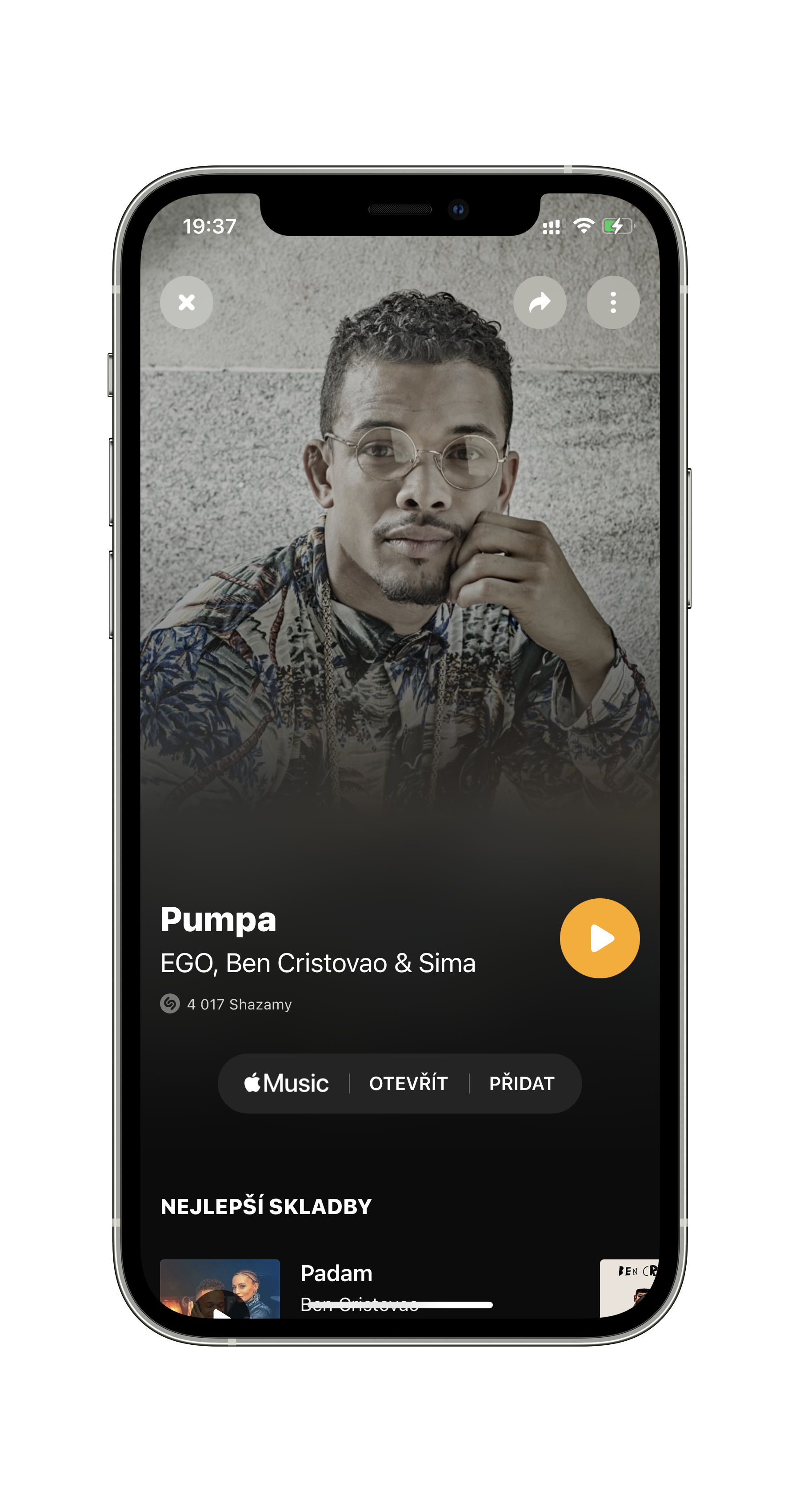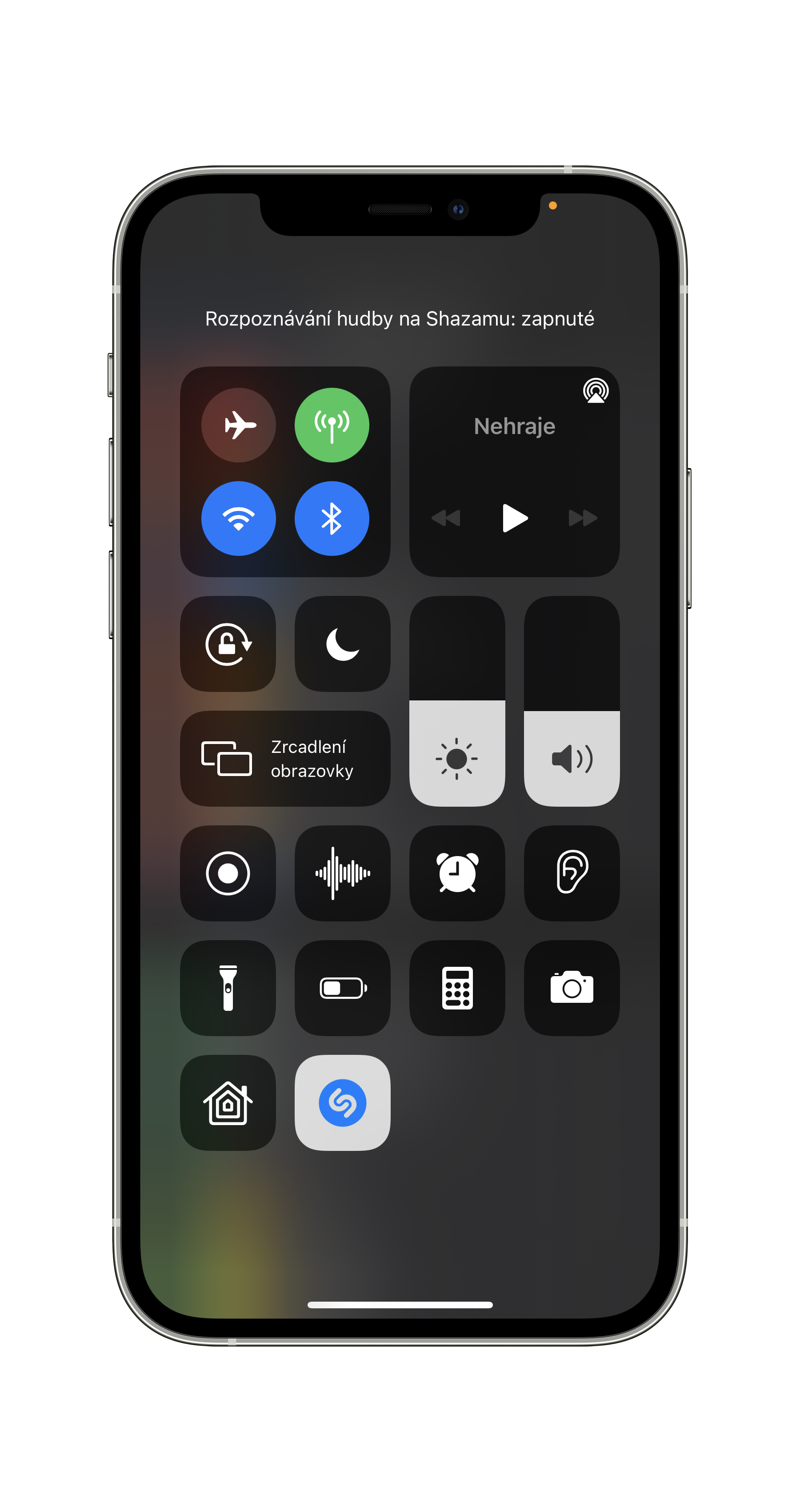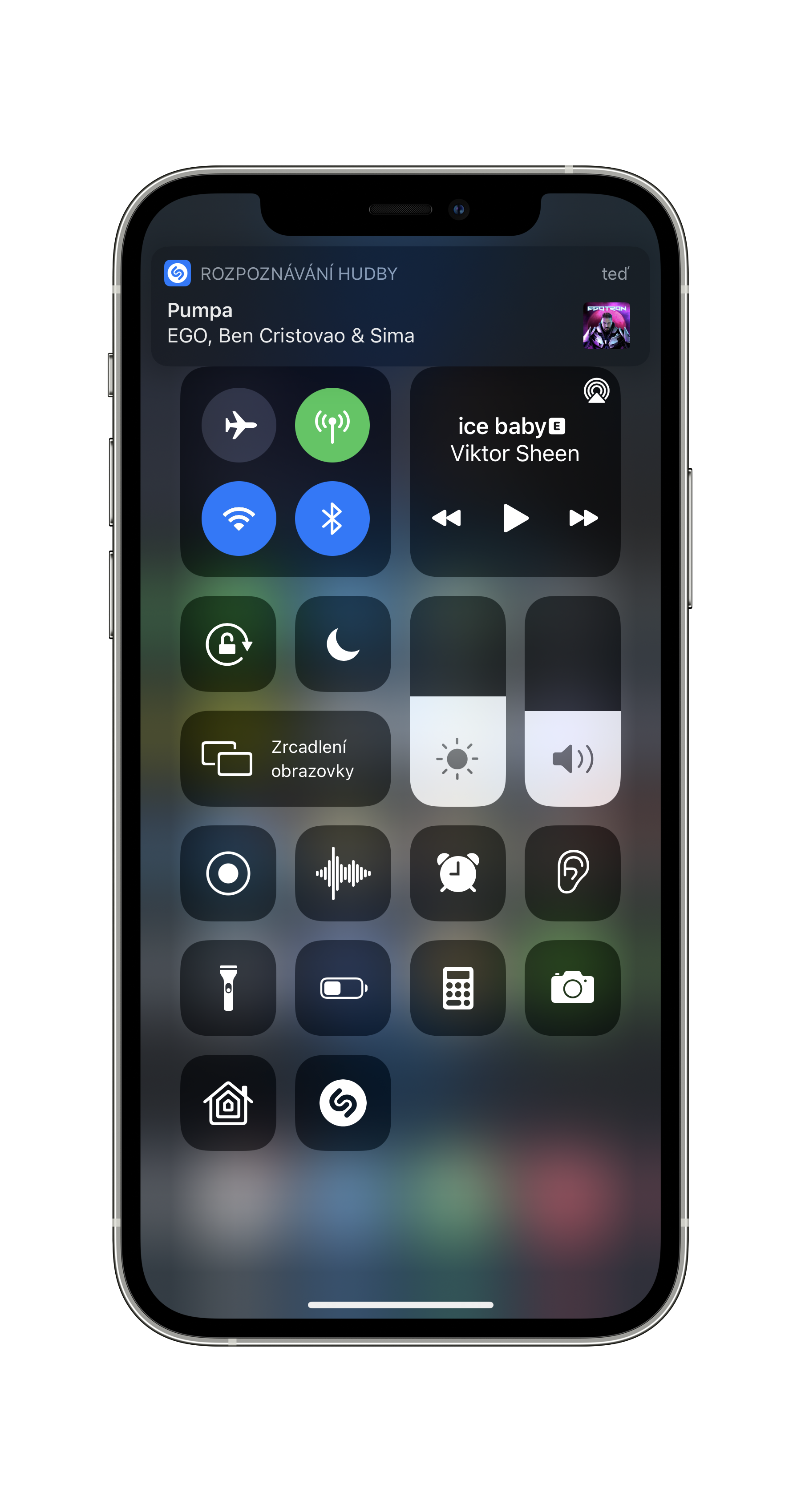 Další novinkou v Control Centre je možnost přidat si ikonku Shazamu, který je integrovaný v iOS. Jedná se o určitě všem dobře známý vyhledávač písniček. Stačí kliknout na ikonu, telefon začne poslouchat, během pár vteřin písničku najde a pomocí baneru vám dovolí si jí ihned poslechnout.