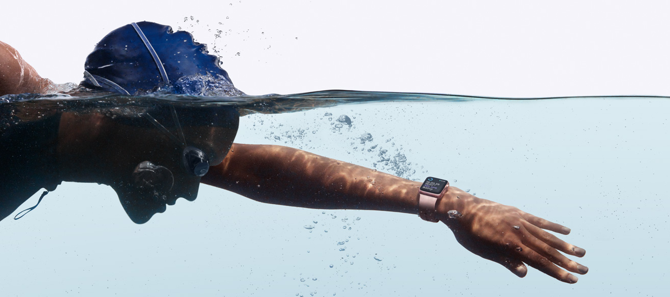 Svým designem jsou nové Apple Watch totožné s první verzí, novinek se dočkáme spíše uvnitř. Jako první novinkou na nových Apple Watch je vodotěsnost až do 50 metrů. Toho mimo jiné Apple dosáhl novým těsněním a přepracováním reproduktoru. Na videu byly hodinky představovány přímo na rukou lidí, kteří plavali v bazénu. Zde je velký rozdíl od první generace, která byla pouze voděodolná a Apple si zde vzal opravdu veliké ponaučení z první generace. Druhá generace také nabízí aplikace přímo pro plavání.