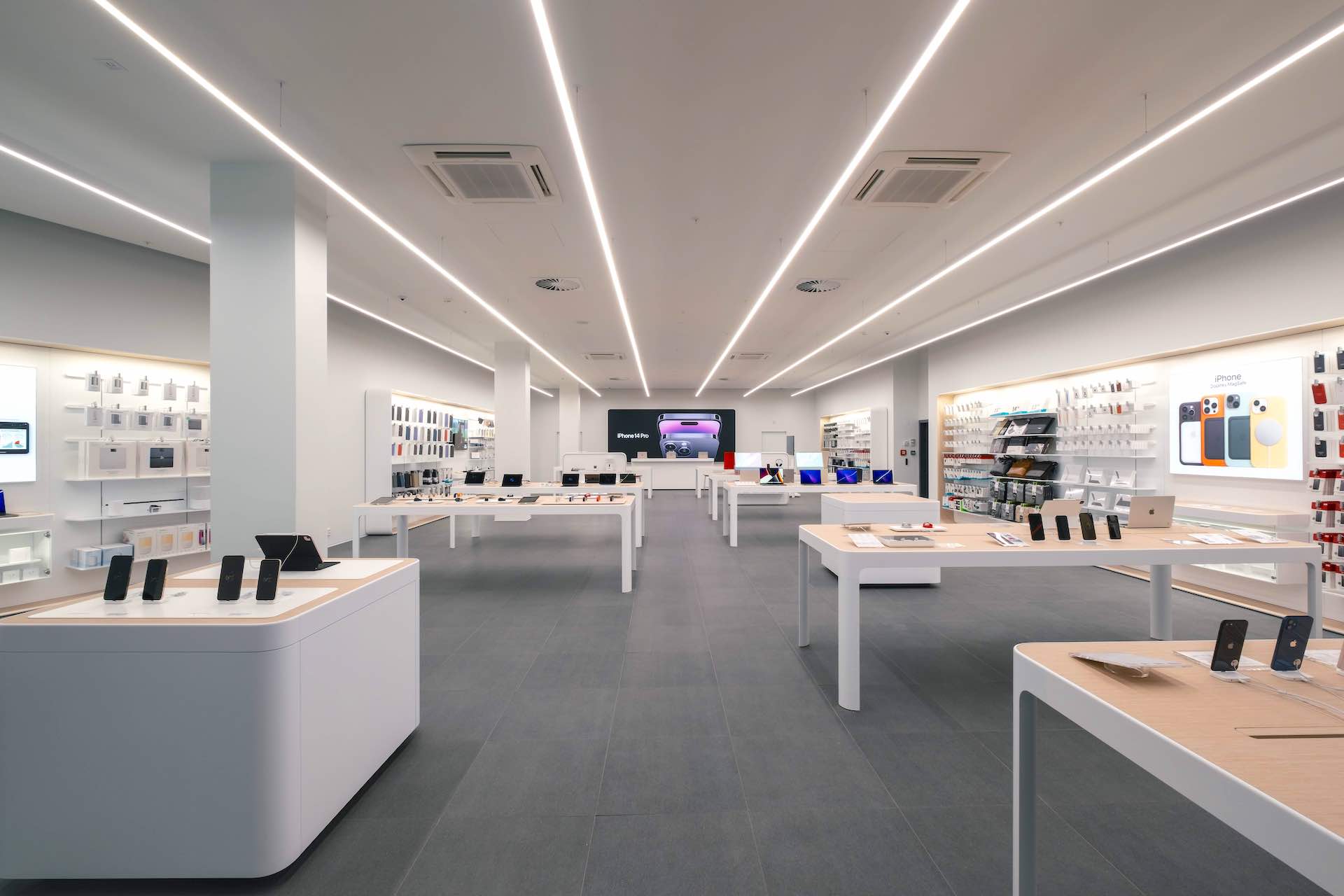 Pokud se tedy iSTYLE rozhodne změnit expozici či jinak upravit podobu své prodejny, stačí „pouze“ vyndat konkrétní části dlažby a upravit vedení kabeláže. Za zmínku stojí také samotné stoly, které jsou dovezené ze Spojených států a odpovídají přísným Apple standardům. O finální kompletaci a dodávky ostatního vybavení se postarala specializovaná firma ze sousedního Německa.