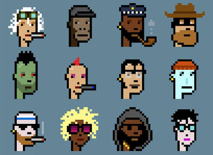Počítačové postavičky Crypto Punks. Nejlevnější se dnes prodávají za tisíce dolarů.