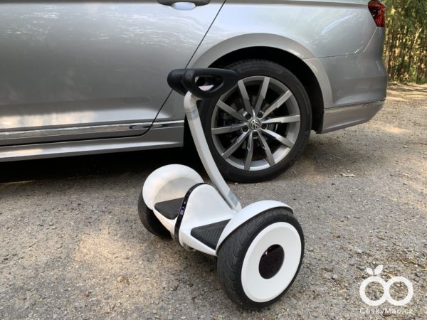 V prvé řadě je nutné zmínit, že vývoj všech modelů Ninebot má na svědomí značka Segway, kterou před několika lety koupila čínská společnost Xiaomi. Samotný Ninebot pak připomíná klasický Segway, na němž se prohání například městská policie či obsluha letišť. Nenajdete zde ovšem žádná řidítka a celkově je konstrukce mnohem subtilnější. Díky tomu ho lze mnohem snadněji transportovat například prostředcích hromadné dopravy či automobilu. Na druhou stranu se docela pronese, jelikož váží necelých 13 Kg. Do metra či autobusu ho tak snadno dostanete, ale tahat ho delší dobu bych rozhodně nechtěl.