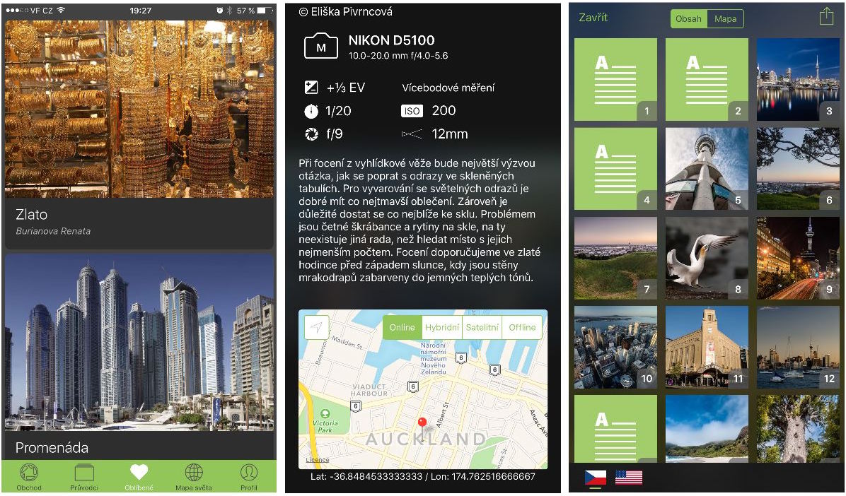Zájemci si mohou v aplikaci zakoupit také další průvodce např. Oklahomu, Rotterdam, St. Louis, Washington D.C., Tokio, Rio de Janeiro, Namíbii, Nový Zéland, italskou Florencii & Cinque Terre, Kyrgyzstán, Kubu, řeckou Meteoru, Island, Pálavu, Moravské Toskánsko, Azory, Prahu, Čínu, Jihoafrickou republiku, České Švýcarsko, Český ráj, Kanárské ostrovy, Paříž, Londýn, New York, Brooklyn, Madeiru, Filipíny, Arizonu, Sicílii, Dubaj nebo Bolívii. Zdarma pak mají možnost nahlédnout do připravovaných průvodců jako třeba národní parky USA apod, Japonsko, Izrael, Botswana a mnoho dalších.