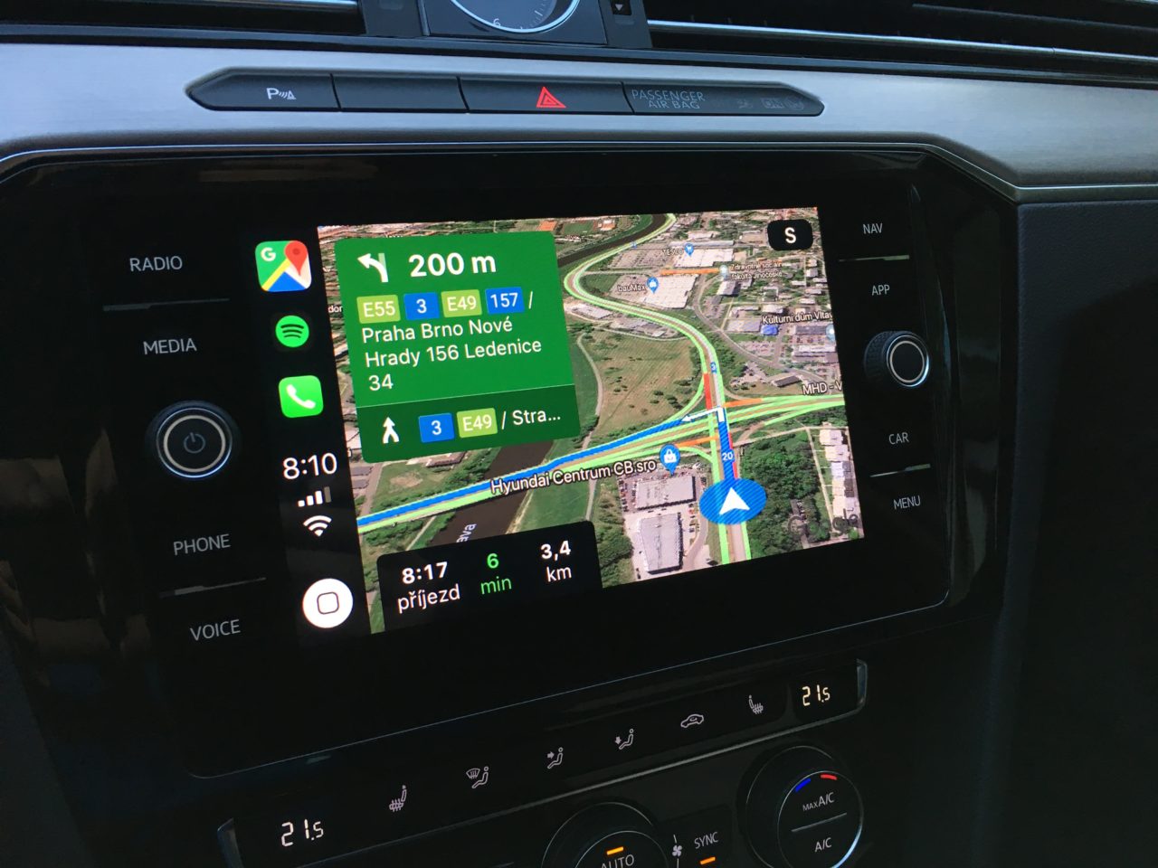 Co se týče Google Maps, v režimu CarPlay nabízí upravené rozhraní uzpůsobené pro pohodlné ovládání na palubních systémech automobilů. Podporováno je hlasové ovládání a synchronizace uložených adres. Velmi příjemným benefitem je možnost přepnutí do fotografického zobrazení mapových podkladů. To oceníte především v hustých zástavbách měst, kde získáte lepší orientaci a přehled o bočních uličkách.