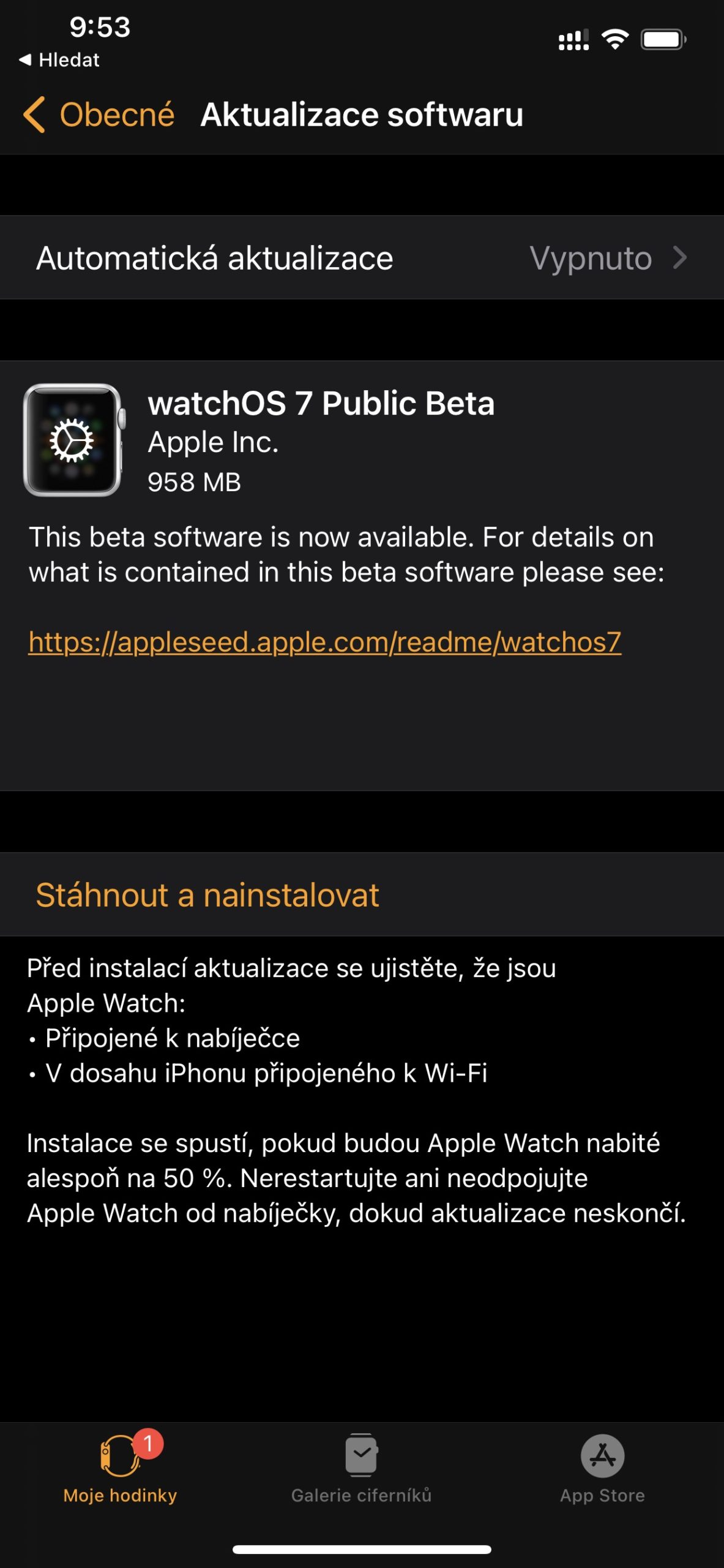 - Na vašem iPhonu, ke kterému jsou vaše Apple Watch spárované, otevřete tento odkaz