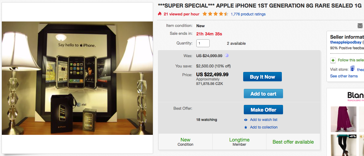Hodnota prvního iPhonu dramaticky roste. Nejzachovalejší kusy přijdou na půl milionu