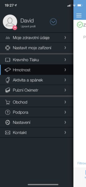 Po registraci a vyplnění nezbytných přihlašovacích údajů je k dispozici komplexní aplikace, která zaštiťuje všechna chytrá příslušenství od společnosti iHealth. Dnes se ale bavíme o iHealth FIT HS2S, takže nás zajímá především záložka „Hmotnost.“