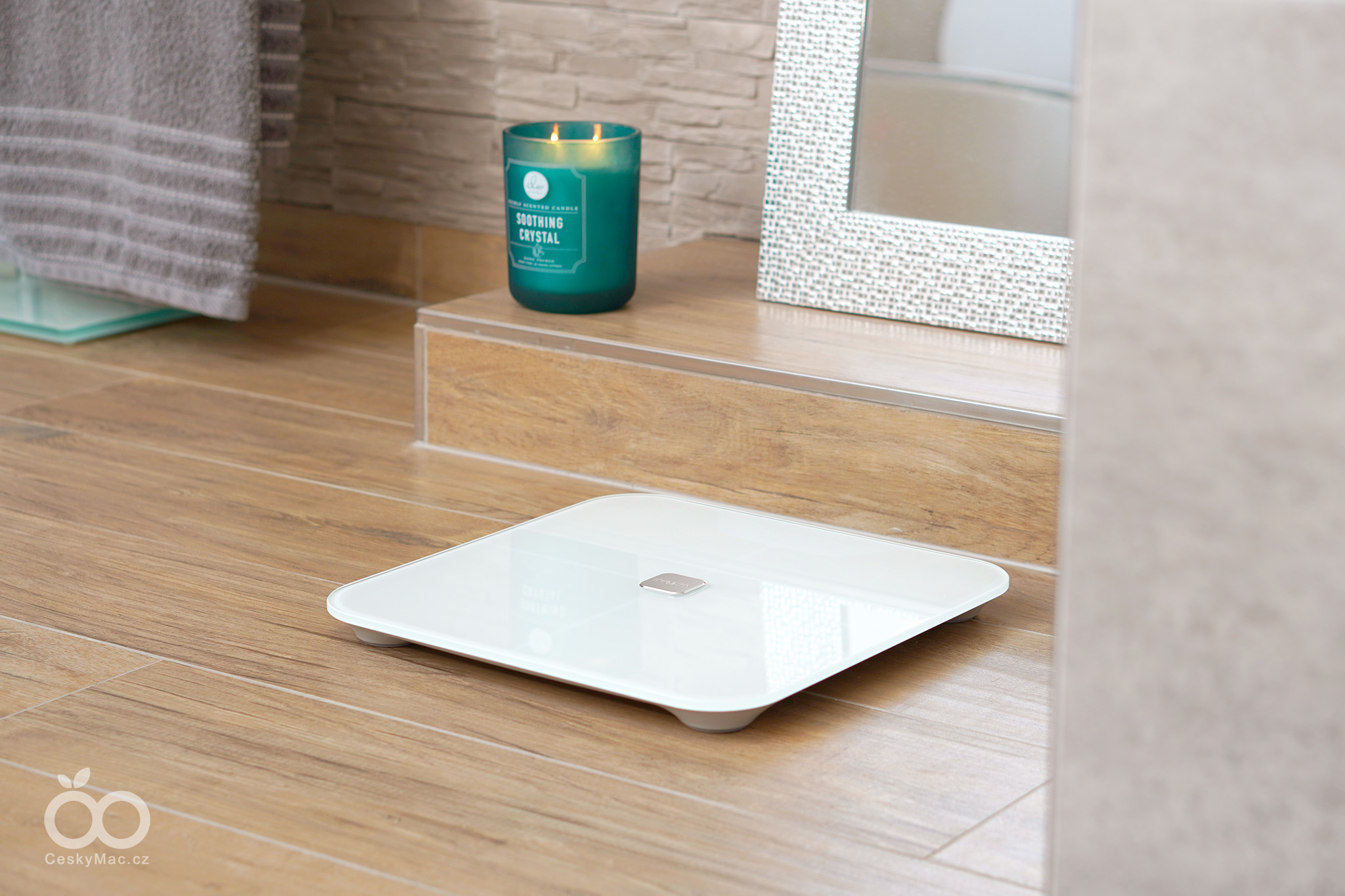 Za dobrého světla je sice mírně patrný výřez pro displej, ale zvlášť ve večerních hodinách jej prostě neuvidíte. Tohle je zkrátka daň za designovou „čistotu“ celého zařízení. Na druhou stranu, pokud máte váhu umístěnou pořád na stejném místě, tento neduh vás trápit nebude.