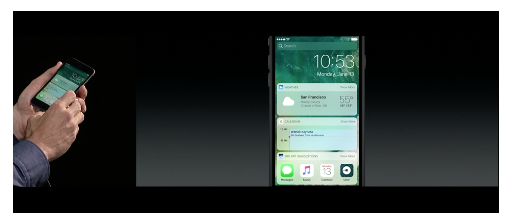 První velkou novinkou je změna notifikačního prostředí, které kromě nového designu přináší také spoustu nových funkcí. iPhone už například nebude nutné odemykat tak, jako doposud. Pro kontrolu notifikací totiž pouze postačí telefon zvednout. V kombinaci se systémem 3D Touch na nejnovějším iPhonu bude pak možno velmi pohodlně například odpovědět na zprávy přímo v prostředí notifikací. Ty budou také celkově interaktivnější. Bez potřeby odemknout iPhone bude totiž možné také například zkontrolovat, kde se zrovna pohybuje vámi objednané taxi. Notifikace se zabydlí také na první obrazovce, která dodnes patřila pouze vyhledávání, a návrhu kontaktů či aplikací.