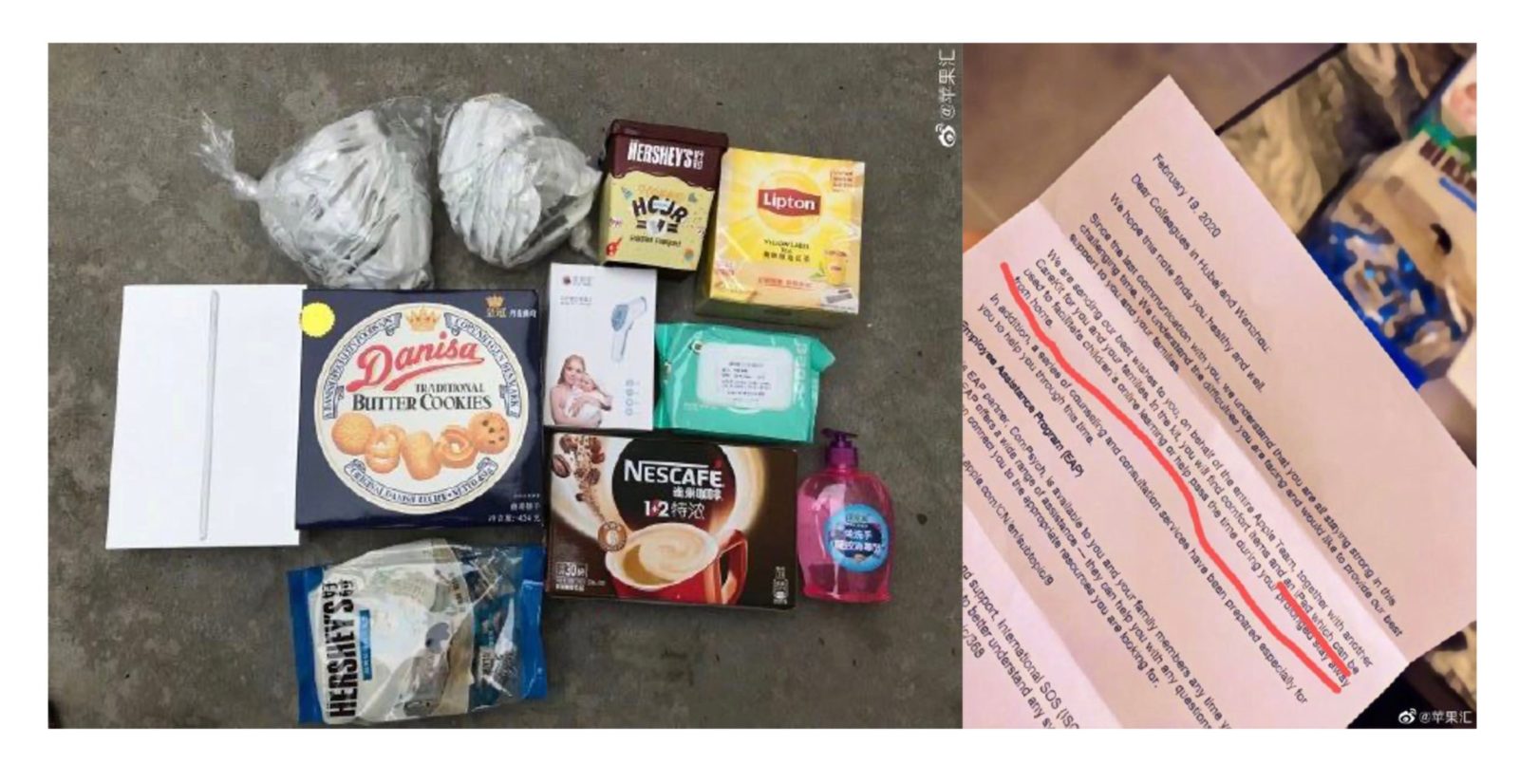 To se týká i Applu, jehož pracovníci uvízli v Číně. Apple se jim snaží pomoci aspoň tak, že pro své pracovníky připravil speciální balíčky. Kromě jídla a hygienických prostředků v nich najdou také iPady. Podle Applu jej mohou využívat třeba děti pracovníků, které si tak zkrátí dlouhé chvíle. Stejně tak jsou v balíčku i sladkosti. Apple v dopise, který balíček doprovází, popřál zaměstnancům sílu a ujistil je, že pro ně a jejich rodiny dělá maximum.