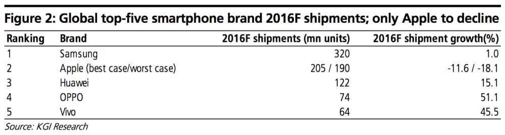 V roce 2014 prodal Apple celkem 193 milionů iPhonů. Prodeje v letošním roce by se podle Kuovy zprávy měly pohybovat právě kolem tohoto čísla. V neoptimističtějším výhledu, který analytik vydal pak očekává, že se Applu podaří prodat maximálně 205 milionů iPhonů. Pokles by tak měl proti loňskému roku dosáhnout 11,6 až 18,1 procent.