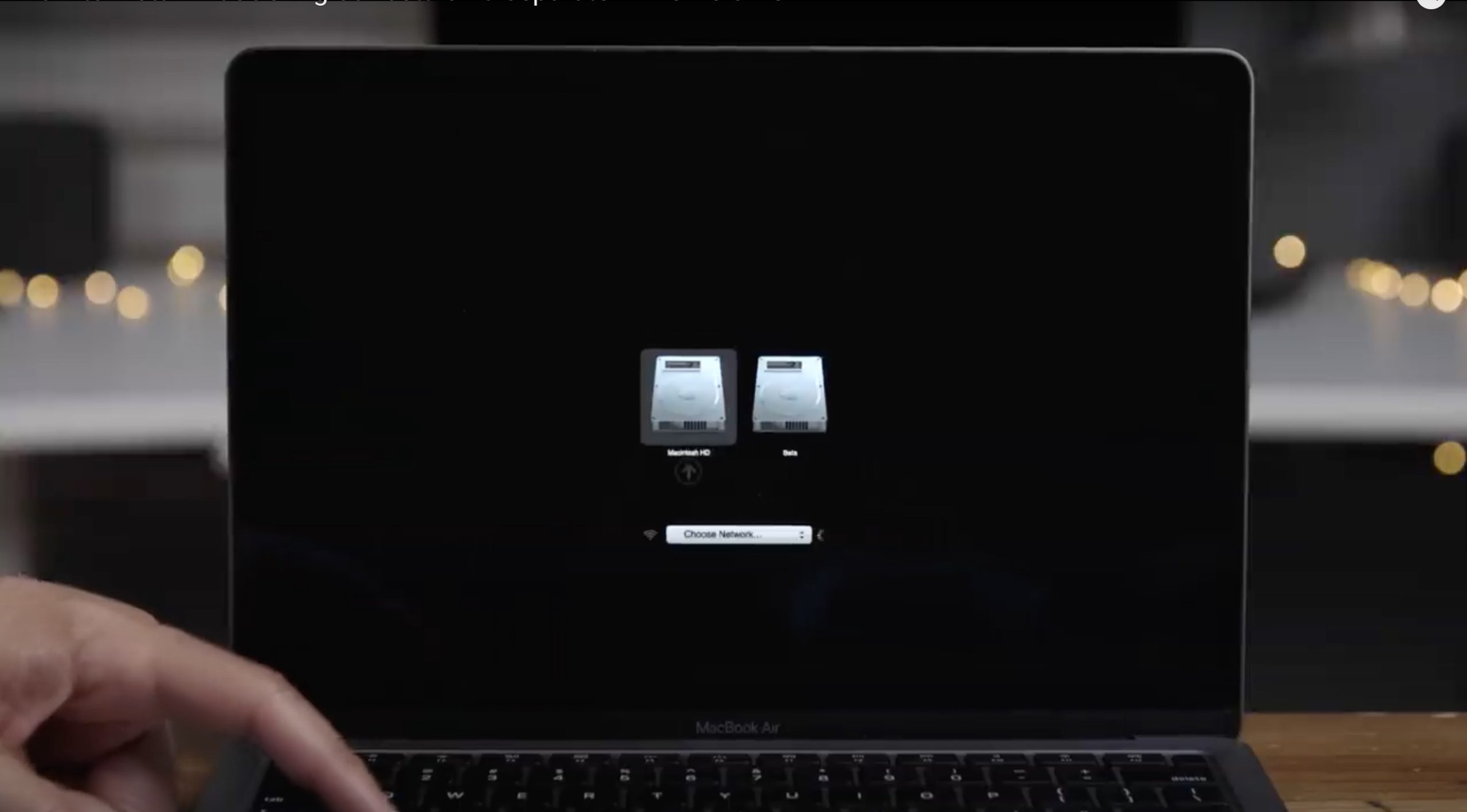 Druhá možnost jak přepínat mezi operačními systémy: při zapínáni nebo restartování Macu podržení klávesy option (alt). Ukáže se nám obrazovka výběru svazku, který chcete spustit. Pokud chcete macOS Big Sur, vyberte Beta, pokud macOS Catalina, vyberte Macintosh HD.