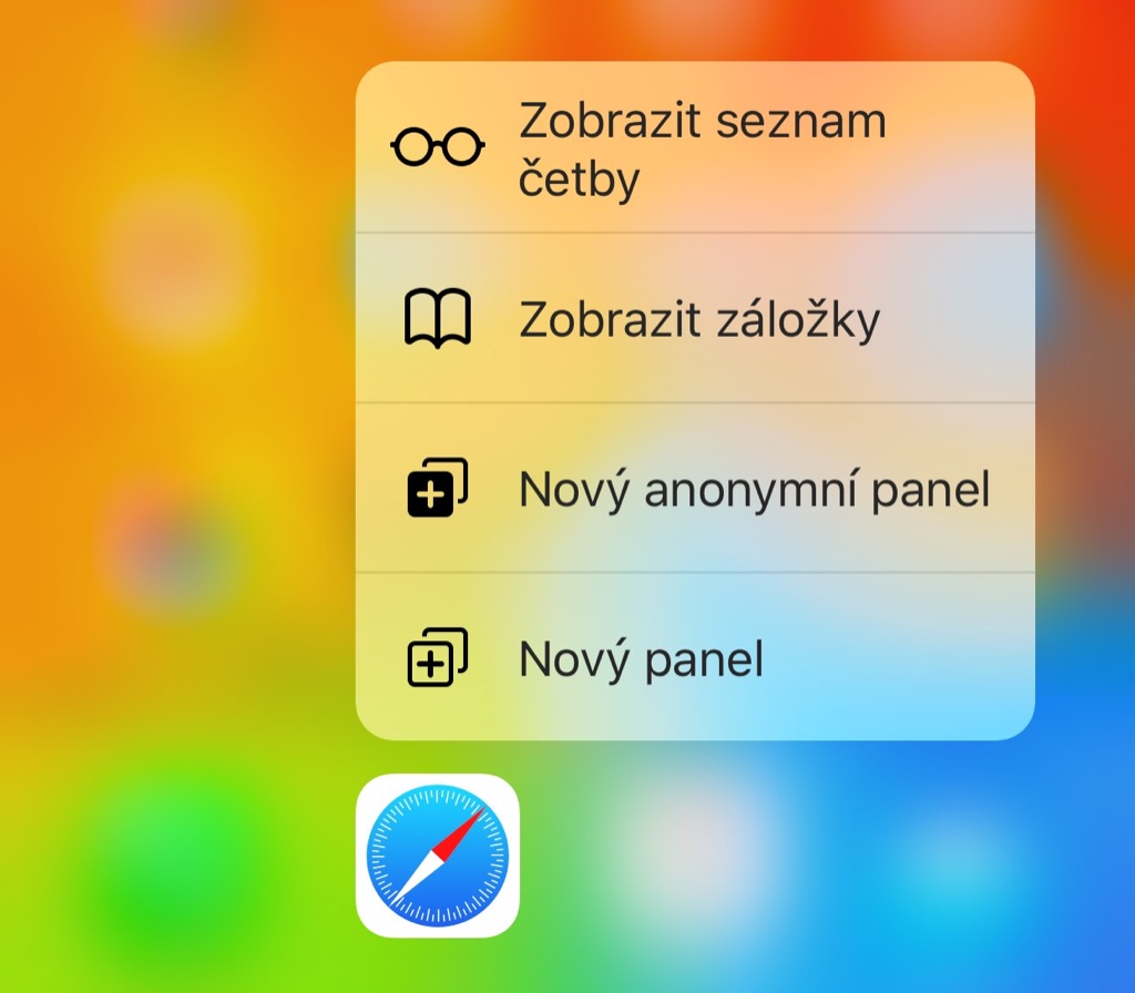 Stejně jako v případě ikony Nastavení, můžete 3D Touch gesto použít u prohlížeče Safari. Z nabídky lze snadno otevřít nový panel či spustit režim anonymního prohlížení.