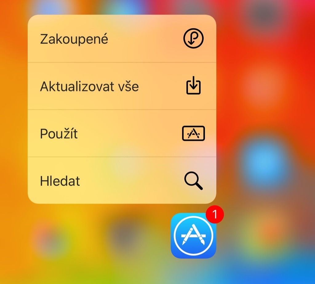 Vynechat nemůžeme ani 3D Touch gesto vyvolané kliknutím na ikonu App Store. Zde vás bude nejčastěji zajímat volba Aktualizovat vše, což spustí automatické aktualizace nainstalovaných aplikací.