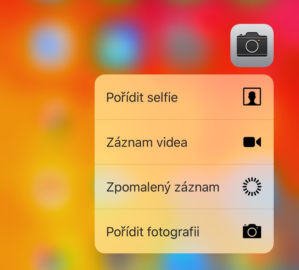 Drtivá většina uživatelů používá nativní aplikaci fotoaparátu. Přestože se nemůže pochlubit řadou pokročilých funkcí, nabízí možnost rychlého spuštění jednotlivých režimů skrze 3D Touch. Na pouhá dvě kliknutí spustíte kameru, fotoaparát, zpomalený záznam či vyfotíte selfíčko.