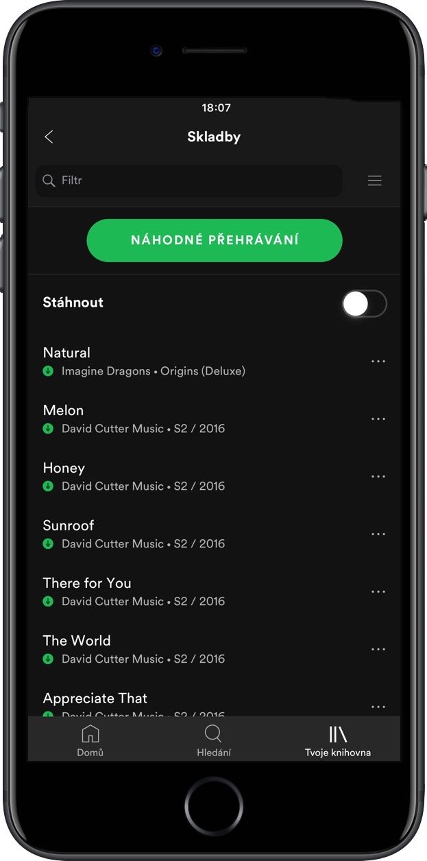 Jak si v aplikaci Spotify pro iOS odfiltrovat staženou hudbu