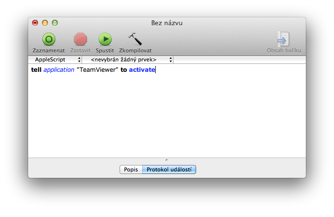 Do okna AppleScriptu zkopírujeme následující:[break]Pokud chceme spouštět jinou aplikaci než uvedenou v tomto návodu, pouze změníme název aplikace v závorkách. Název v závorkách musí být naprosto stejný jako je název aplikace.