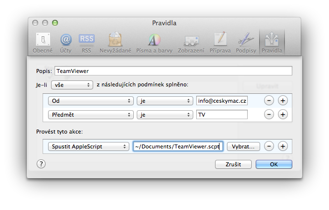Dotaz zněl:[break]Je možno pomocí automatoru při přijetí pošty s předem daným názven spustit určenou aplikaci. (přijde mail, pustí se teamviewer a já se dostanu na svůj MAC)?