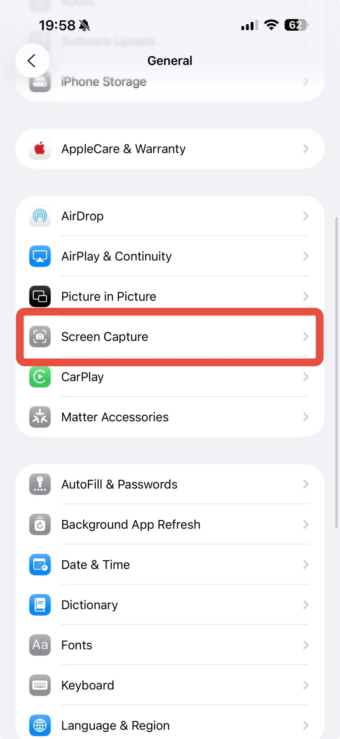 2. Přejděte do Obecné > Snímek obrazovky (Screen Capture).