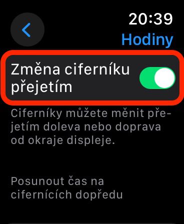 Jak ve watchOS 10 povolit snadné přepínání ciferníků přejetím prstu po displeji