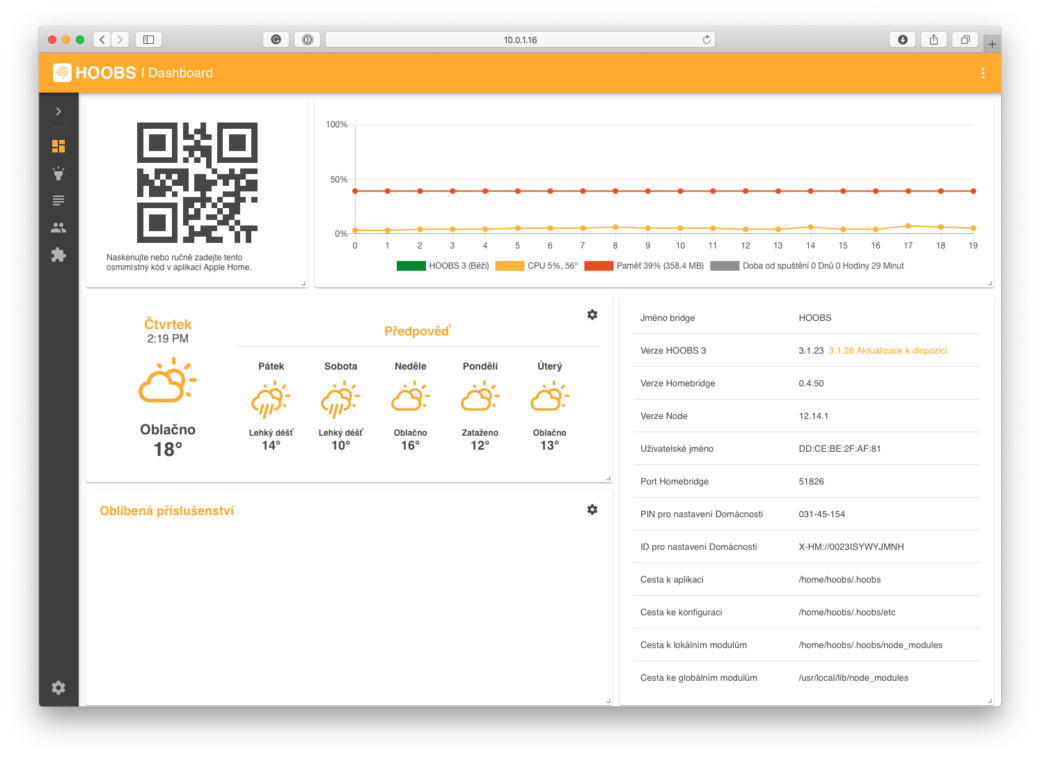 Jestli jste vše udělali podle návodů, které jsme vám přinesli máte nyní plně funkční Homebridge. Nyní jej stačí přidat do aplikace Home na vašem telefonu. Toto se provádí oskenováním kódu v Dashboardu aplikace HOOBS.