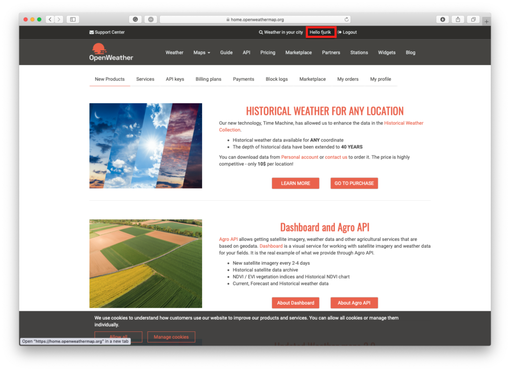 Pro správné fungování tohoto pluginu je potřeba se zaregistrovat na webových stránkách openweather.com kde získáme API key. Pokud jste o nich nikdy neslyšeli, zaregistrujte se zde.