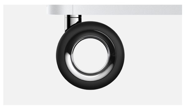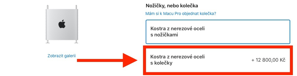 Při konfiguraci Macu Pro si můžete přiobjednat upravenou kostru skříně, která je doplněna o kolečka. Mac Pro je totiž pořádný macek, což může jeho častější přemisťování pěkně stížit. Apple tak dává zákazníkům možnost vyměnit nožičky za praktická kolečka, která zásadně zpříjemní manipulaci s počítačem. Za tuhle vychytávku si ovšem Apple účtuje 12 800 korun, což není zrovna málo. Při takto tučném příplatku je ovšem s podivem, že inženýři nemysleli na tak důležitou věc, jakou je brzda.