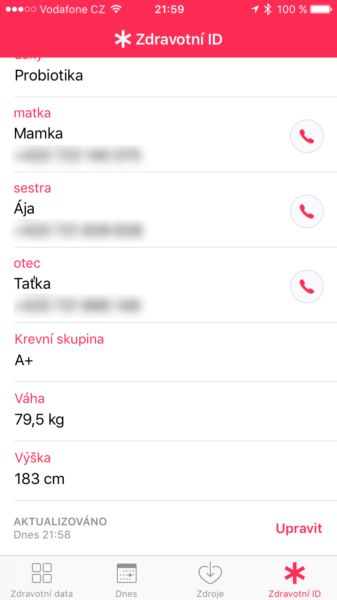 Nezapomeňte, že v rámci co nejefektivnější lékařské pomoci je dobré své zdravotní informace pravidelně aktualizovat. I přesto, že je tato funkce užitečná, doufám, že ji nikdy nebudete potřebovat, ať už jako zachránce nebo pacient.