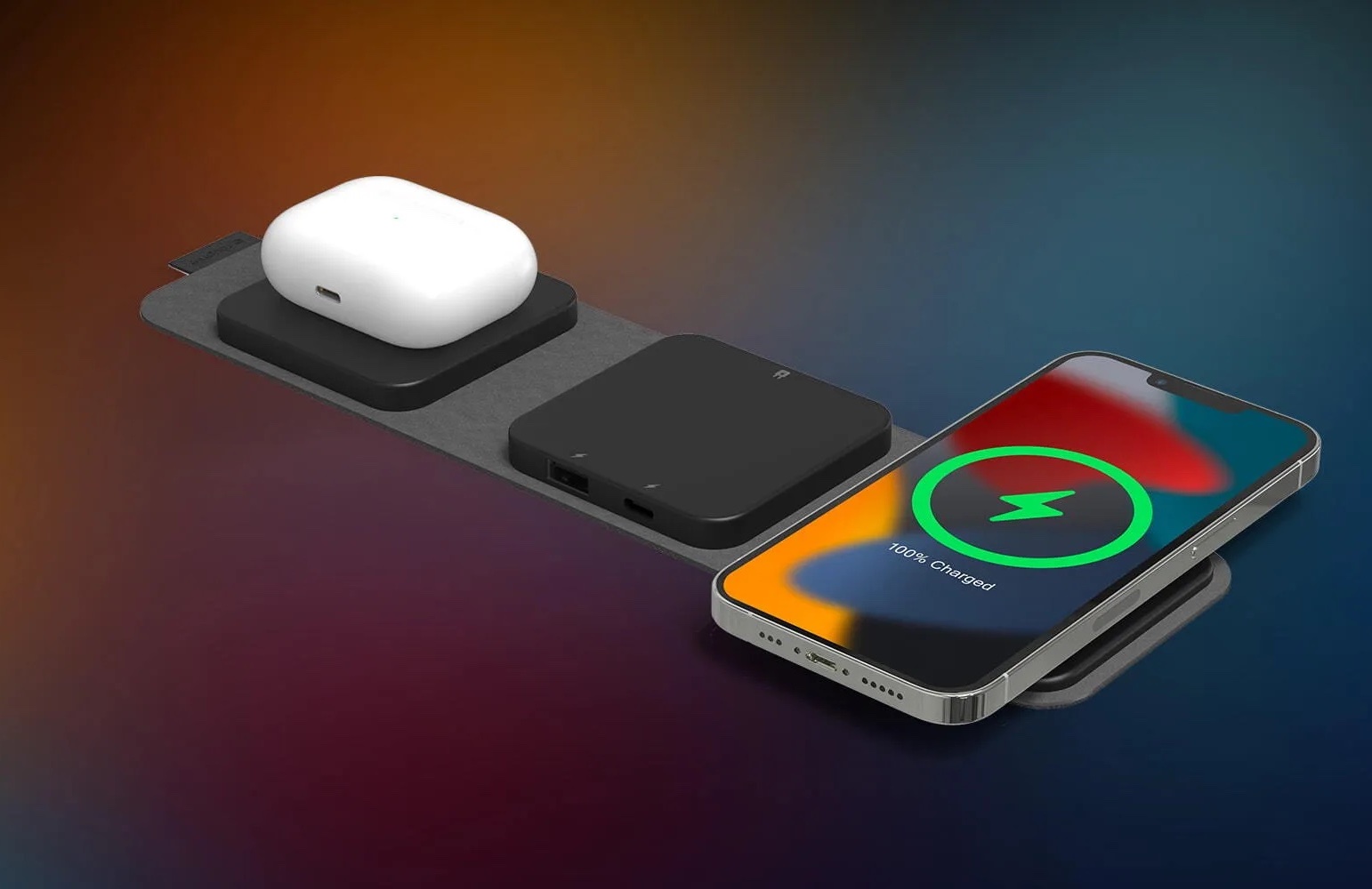 Když nabíječku nepotřebujete, lze ji složit do kompaktního tvaru a vložit do transportního pouzdra. Velkou pochvalu si Mophie zaslouží také za to, že nabíječku dodává společně s kabelem a 30W USB-C adaptérem do zásuvky. Na oficiálním webu výrobce lze tuto vychytanou nabíječku pořídit za necelých 100 dolarů, což lze s ohledem na její praktičnost považovat za celkem adekvátní částku. Mophie dále nabízí ještě variantu s dokovací základnou pro Apple Watch, ta vychází 150 dolarů.