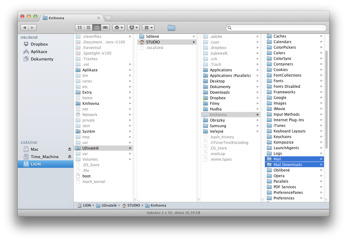 - Přesuňte obě složky (Mail + Mail Downloads) na nové místo, kde je chcete mít. (Externí disk, nebo jiné uložiště).