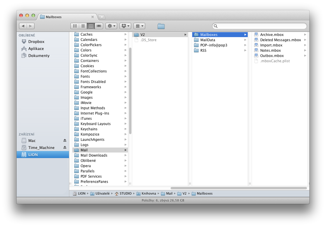 Nyní je načase jít tam, kde si Mac Mail ukládá svá data.