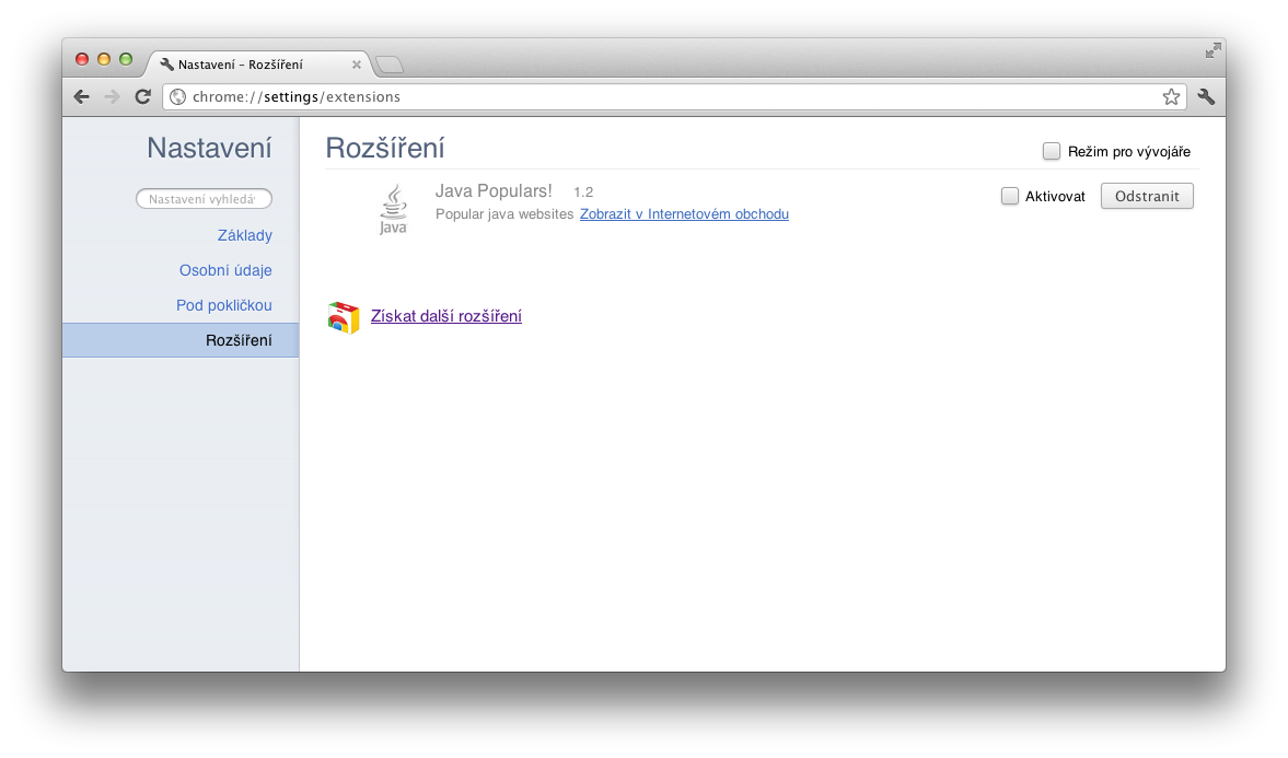 Google Chrome – Do adresního řádku zadejte bez uvozovek: “chrome://settings/extensions” a zakažte Java plug-in (viz. obrázek 3)