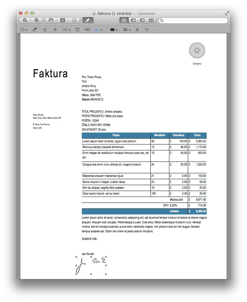 Hotovo, podpis máme uložený v aplikaci Náhled a můžeme jej používat pro podepisování dokumentů.