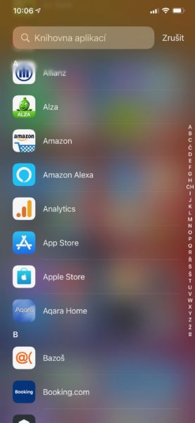 Z Knihovny aplikací se lze dostat na abecední výpis aplikací a to potažením prstu dolů z poloviny obrazovky. Zpět ale k tomu, proč mi Knihovna aplikací dává smysl. Pokud totiž máte na ploše aplikaci, kterou nepoužíváte příliš často, ale zároveň ji nechcete zobrazit a ani odinstalovat, můžete ji jednoduše přidat do knihovny. Ikonka aplikace vám pak nebude zabírat drahocenné místo na ploše a když si na ni vzpomenete, máte k ní přesto okamžitý přístup.