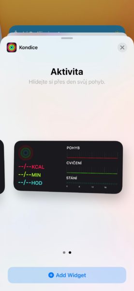 Aktuální nabídka widgetů není zatím příliš bohatá a lze vybírat pouze z nativních Apple aplikací. Je ovšem vhodné dodat, že jde pouze o dočasné řešení a jistě se již brzy objeví další widgety od vývojářů třetích stran. Během prezentace bylo například vidět demo, kde byl k dispozici widget pro aplikaci Nike Run Club a několik dalších.