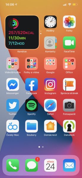 Další vlastností widgetů je možnost jejich vrstvení. To funguje tak, že nad jeden widget umístíte klidně několik dalších, mezi nimiž pak můžete listovat. Tato varianta je už o něco praktičtější a člověk tím alespoň ušetří trochu místa na ploše. S tím se zároveň pojí můj další poznatek. Subjektivně mi přijde, že iOS 14 značně plýtvá místem. Mezery mezi ikonami aplikací a widgetů působí až humpoláckým dojmem. Osobně bych si dokázal představit, že Apple změní rozměr matice a na plochu přidá ještě jednu řadu ikon.