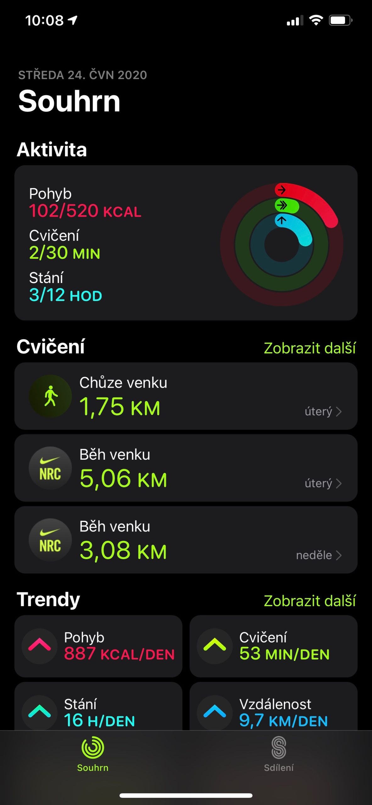 Další vlastností widgetů je možnost jejich vrstvení. To funguje tak, že nad jeden widget umístíte klidně několik dalších, mezi nimiž pak můžete listovat. Tato varianta je už o něco praktičtější a člověk tím alespoň ušetří trochu místa na ploše. S tím se zároveň pojí můj další poznatek. Subjektivně mi přijde, že iOS 14 značně plýtvá místem. Mezery mezi ikonami aplikací a widgetů působí až humpoláckým dojmem. Osobně bych si dokázal představit, že Apple změní rozměr matice a na plochu přidá ještě jednu řadu ikon.