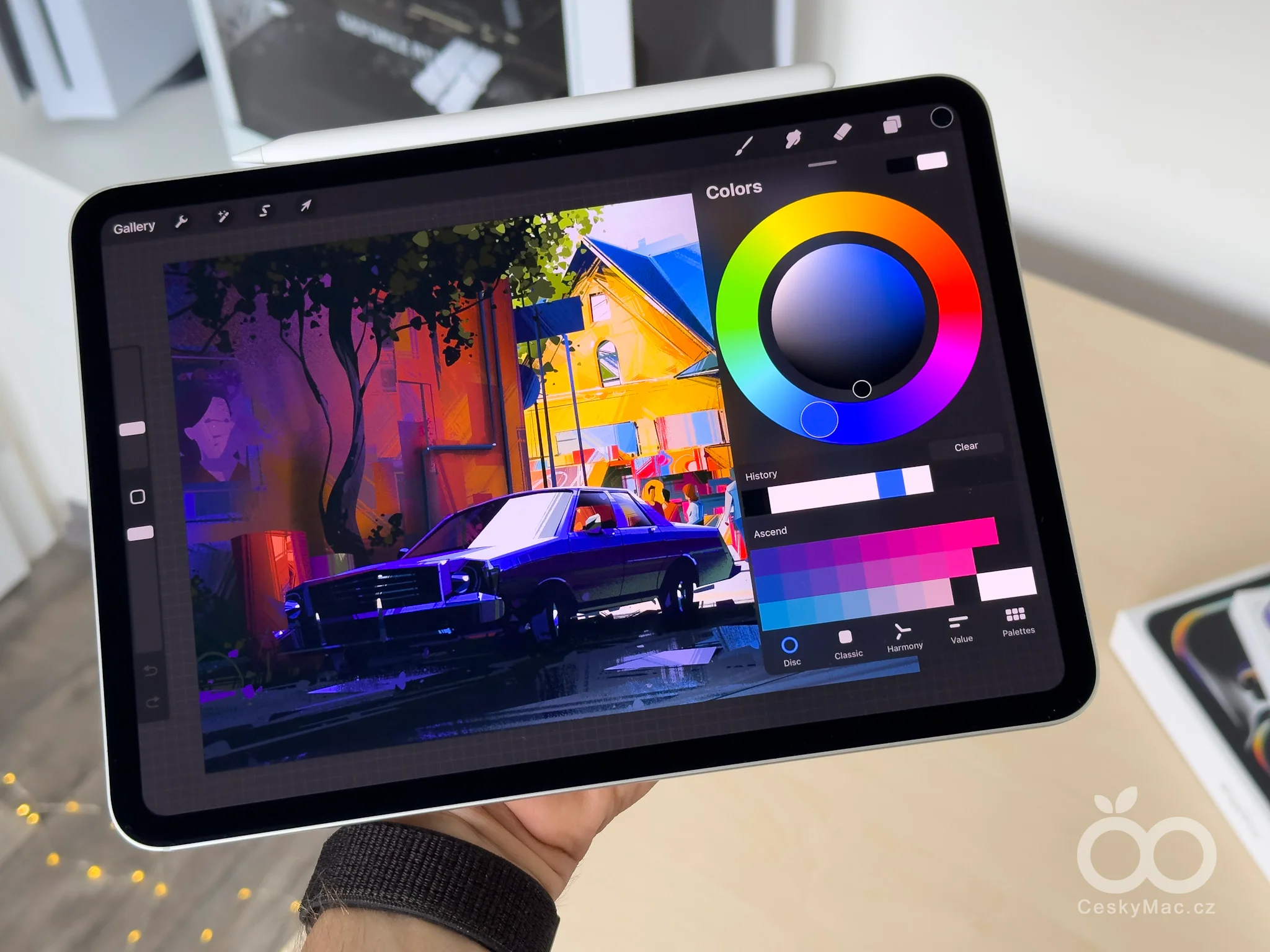 Největší a na první rozsvícení nepřehlédnutelnou změnou je nový OLED displej. Respektive dvojice OLED displejů spojená do jednoho (Tandem OLED). Toto řešení umožňuje obrovský dynamický rozsah (2 000 000:1) spolu s vysokým jasem (1 000 nitů po celé ploše, 1 600 nitů při HDR obsahu). Už na papíře zní specifikace velmi dobře, realita ale úplně předčila má očekávání. Při prvním zapnutí obrazovky jsem chvíli myslel, že je iPadOS snad namalovaný. Právě vysoký kontrast a svítivost dokáží i za jasného dne vytvořit dokonalou iluzi malířského plátna.