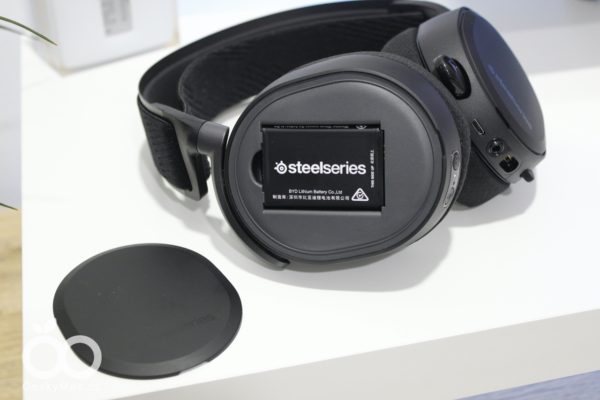 Bočnice pravé mušle má navíc magnetický kryt, pod nímž se nachází vyměnitelných akumulátor. Další je pak součástí prodejního balení. Výdrž se pohybuje kolem deseti hodin na jedno nabití. Celkem tedy můžete počítat s dvaceti hodinami poslechu. Prakticky je však výdrž neomezená, jelikož jeden z akumulátorů se vždy nabíjí ve vysílači, který slouží jako dobíjecí stanice. Tento způsob řešení vážně nemá chybu a jde o jednu z věcí, kterou jsem si na SteelSeries Arctis Pro Wirelles okamžitě zamiloval. Za tohle vážně palec nahoru.