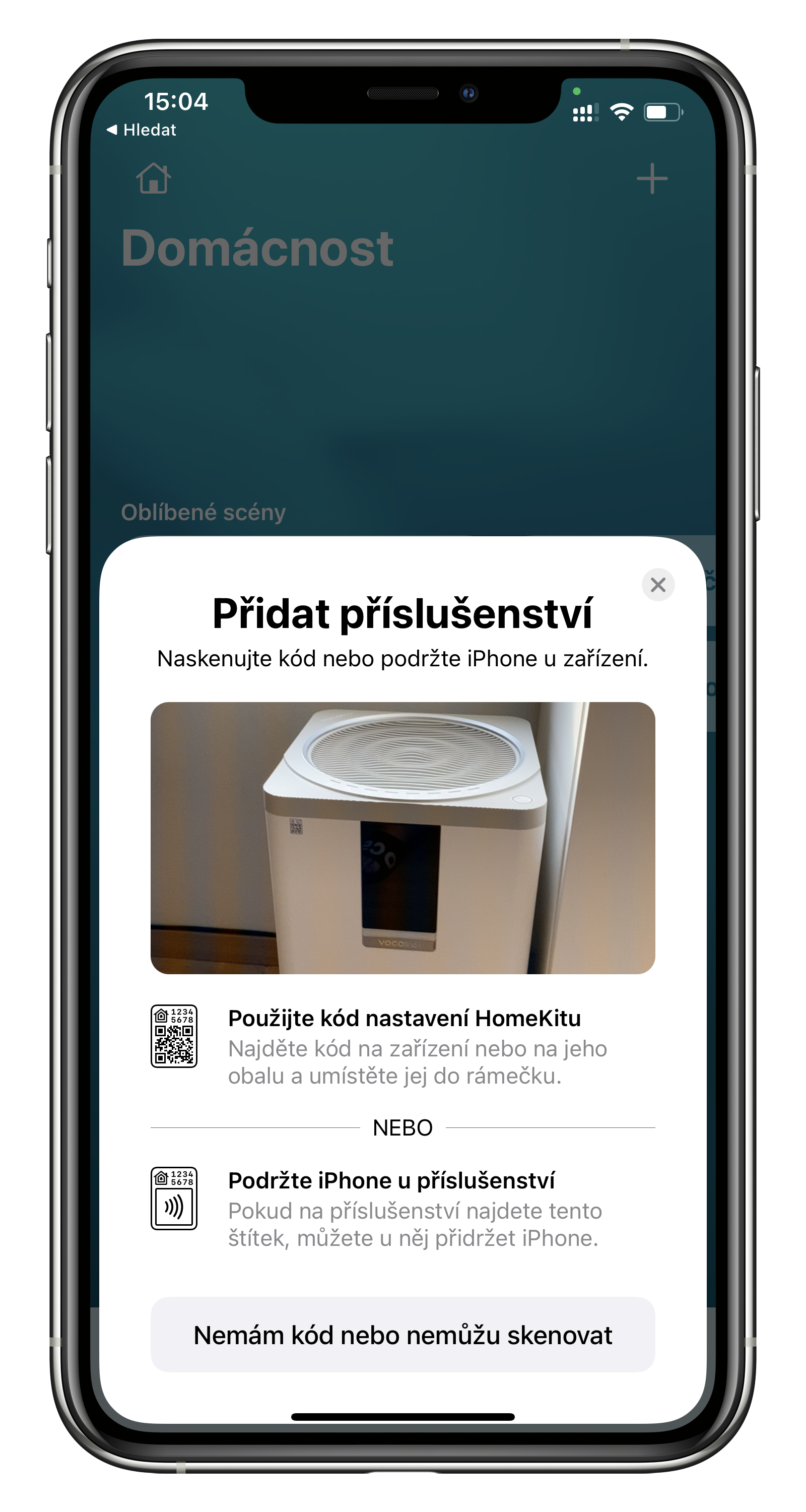 Právě díky podpoře Apple HomeKit je párování příslušenství od VOCOlinc tak krásně jednoduché. Stačí otevřít aplikaci Domácnost, nebo aplikaci přímo od VOCOlinc, kde naskenujete QR kód a telefon vás potom krok po kroku navede počátečním nastavením. V podstatě jde o postup “Pokračovat, pokračovat, pokračovat, ano, hotovo”.