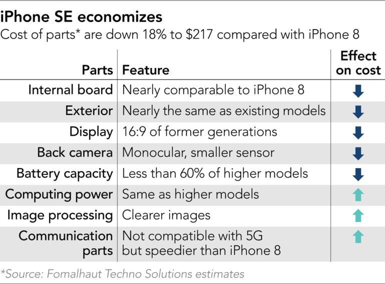 Samotná skutečnost, že iPhone SE 2020 se téměř neliší od iPhonu 8, znamená, že Apple na prodeji značně vydělá. Na toto téma se zaměřila japonská společnost Fomalhaut, která iPhone SE rozebrala a nacenila použité komponenty. Při této analýze se dokonce zjistilo, že náklady na výrobu iPhonu SE jsou dokonce o 18 % nižší, než u iPhonu 8.