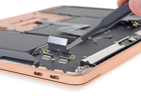 Při hlubším zkoumání se autorům pitvy podařilo zjistit, že oba Thunderbolt 3 porty v novém MacBooku Air jsou modulární. To znamená, že pokud dojde k jejich poškození, opravu lze provést samostatnou výměnou. Podobné je to také u dalších komponent, které nejsou naletovány přímo na základní desku.