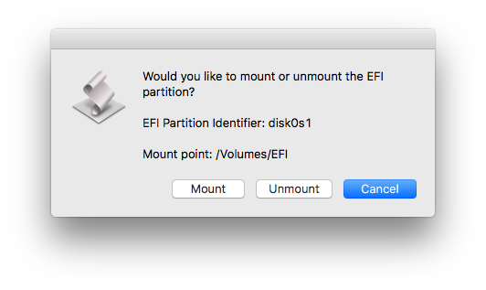 Jednoduchá aplikace, která připojí EFI oddíl (ke stažení zde).