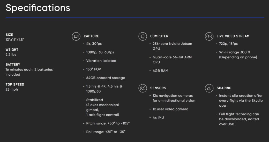 Skydio R1 využívá k orientaci v prostoru celkem 12 kamer, z nichž si vytváří podrobnou 3D mapu svého okolí a snaží se předpovídat pohyby sledovaného objektu. Pro lepší pochopení vlastností doporučujeme shlédnout přiložené video, kde stroj předvádí své umění. Jedním slovem je až neuvěřitelné, jak propracovanou technologii se inženýrům podařilo vytvořit.