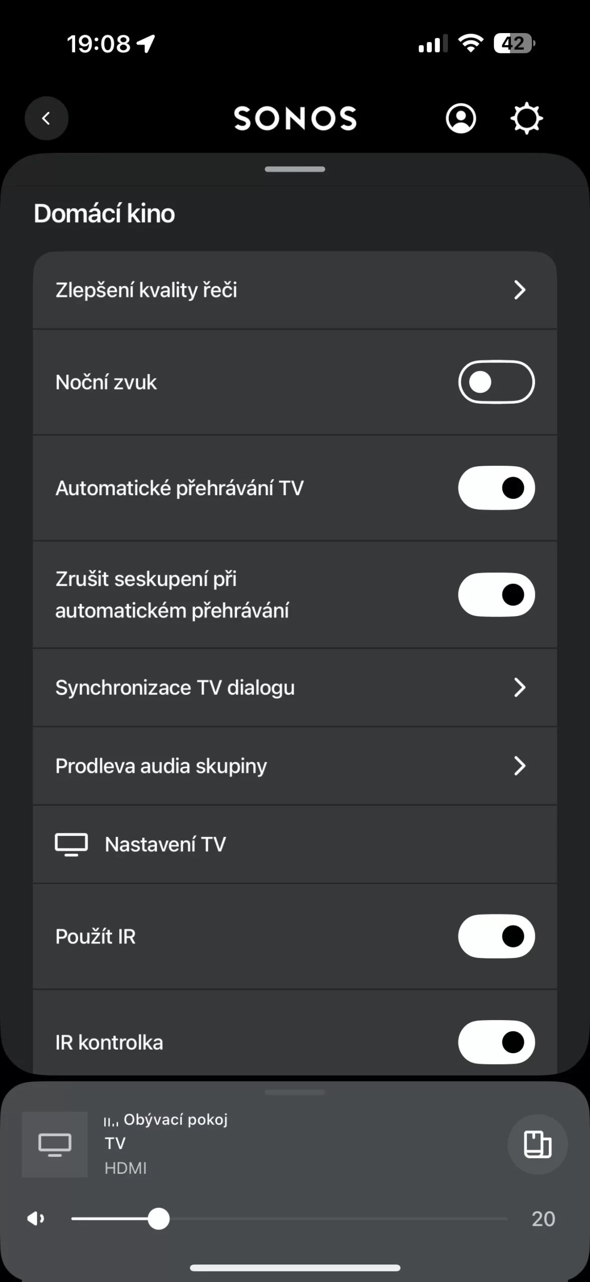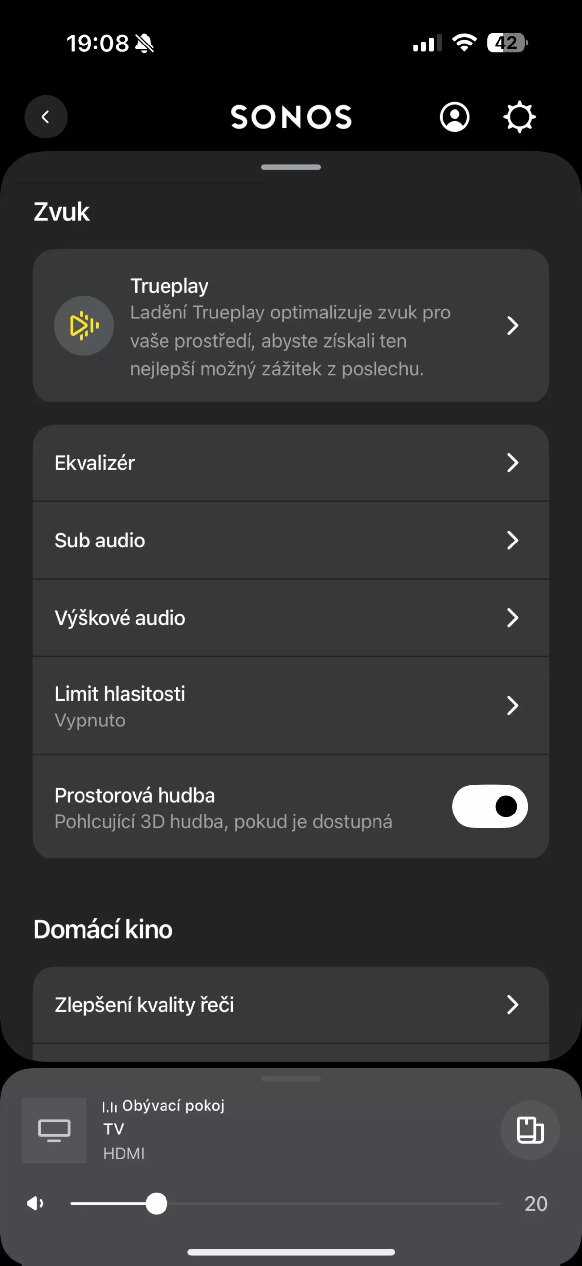 Samotná mobilní aplikace pak nabízí ještě další možnosti nastavení včetně úpravy ekvalizéru, napojení na hlasové asistenty, zvýraznění dialogů, propojení s ostatními reproduktory a další funkce typické pro Sonos soundbary a celý ekosystém.